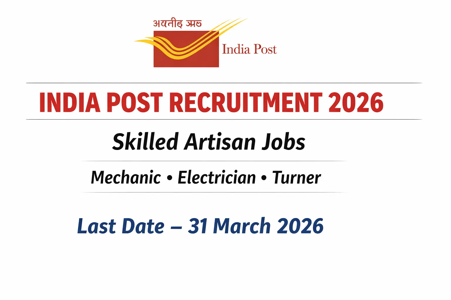The India Post under the Ministry of Communications has released an official notification for India Post Group C Recruitment 2026. This recruitment drive has been announced by the Mail Motor Service (MMS), Worli, Mumbai to fill several Skilled Artisan posts such as Motor Vehicle Mechanic, Electrician, Turner, Welder, Tyreman, and Blacksmith.